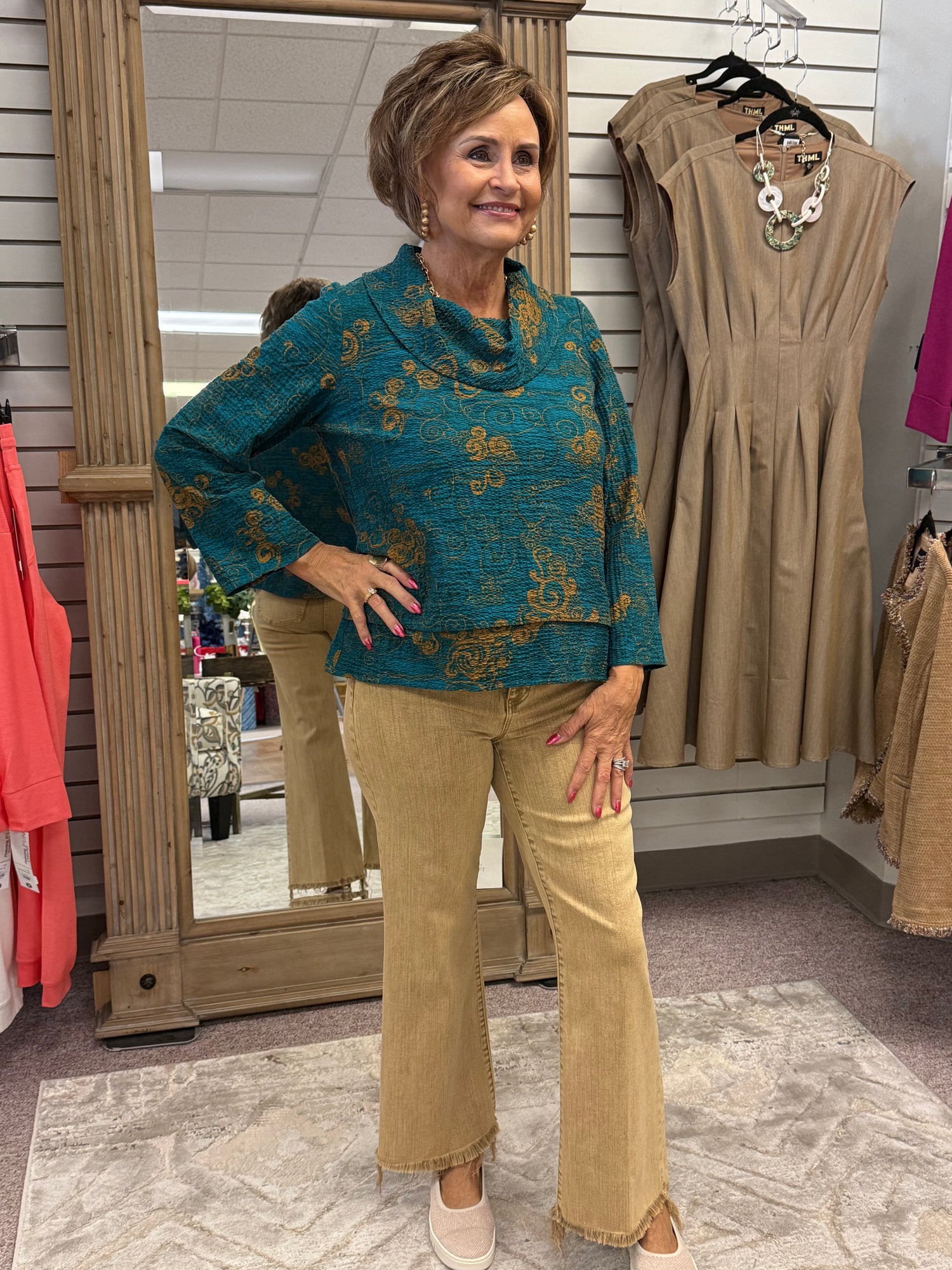 Content: 68% Rayon, 30% Poly, 2% Spandex