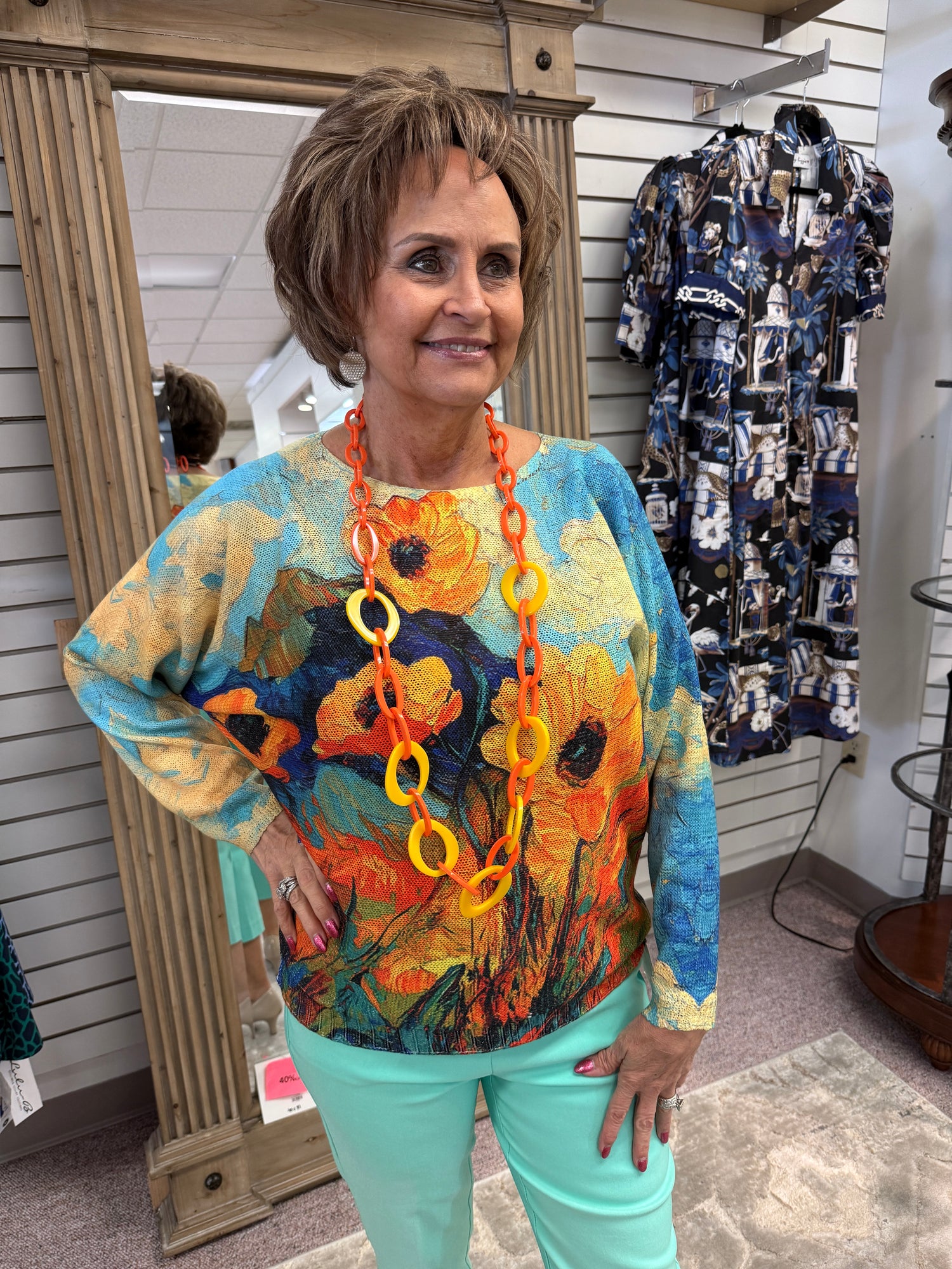 Easy does it. Fabulous prints and lightweight knit make this a four season winner! Pair with just about anything for a memorable outfit.