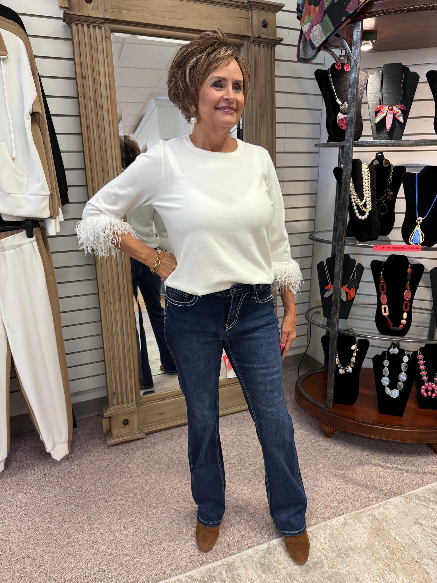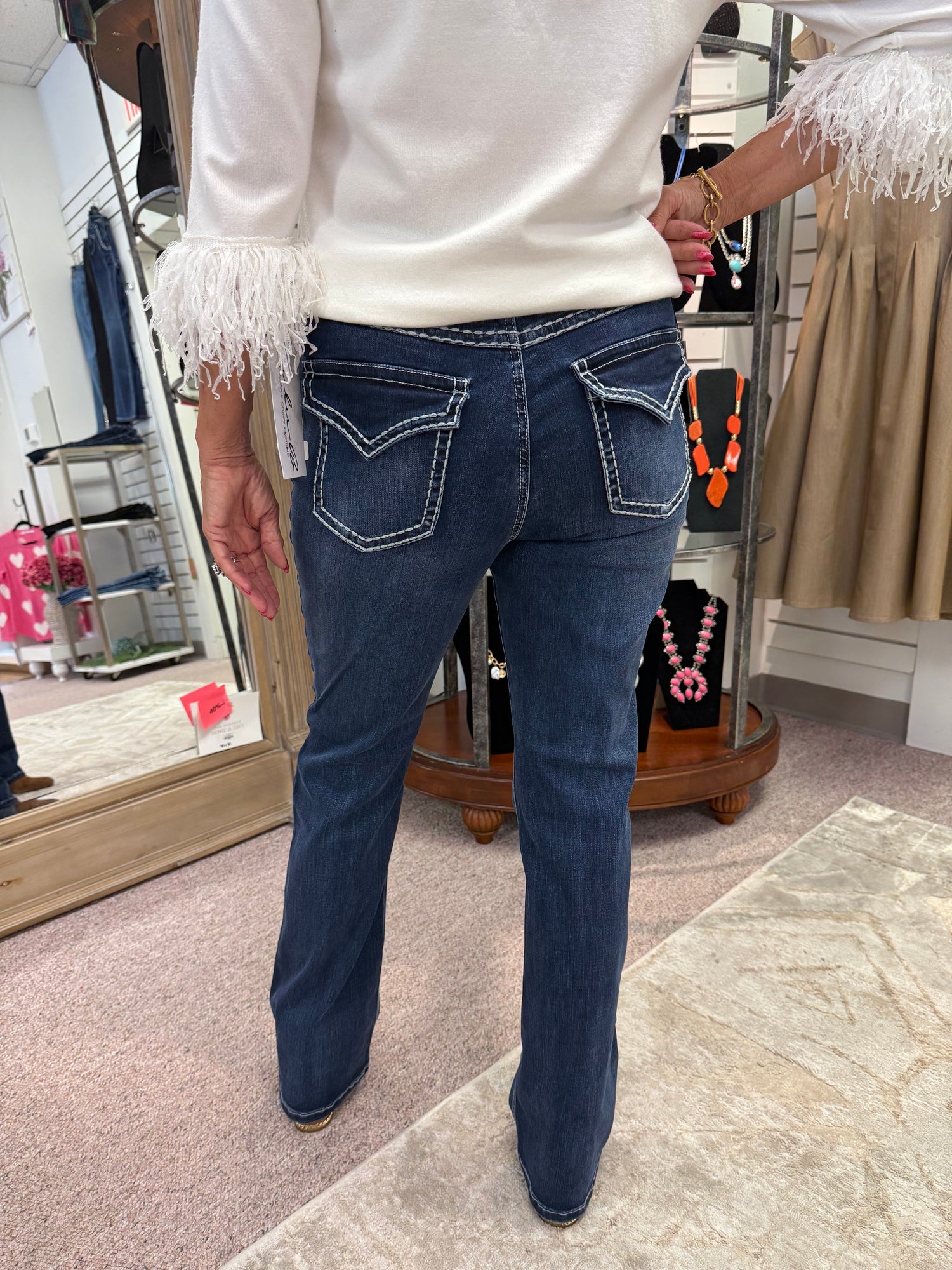 Great times are ahead when you slip on these fun and flattering jeans. White , bolded stitching brings back memories of yesteryear. Soft denim and our signature stretch will help these jeans keep their shape and style wear after wear.