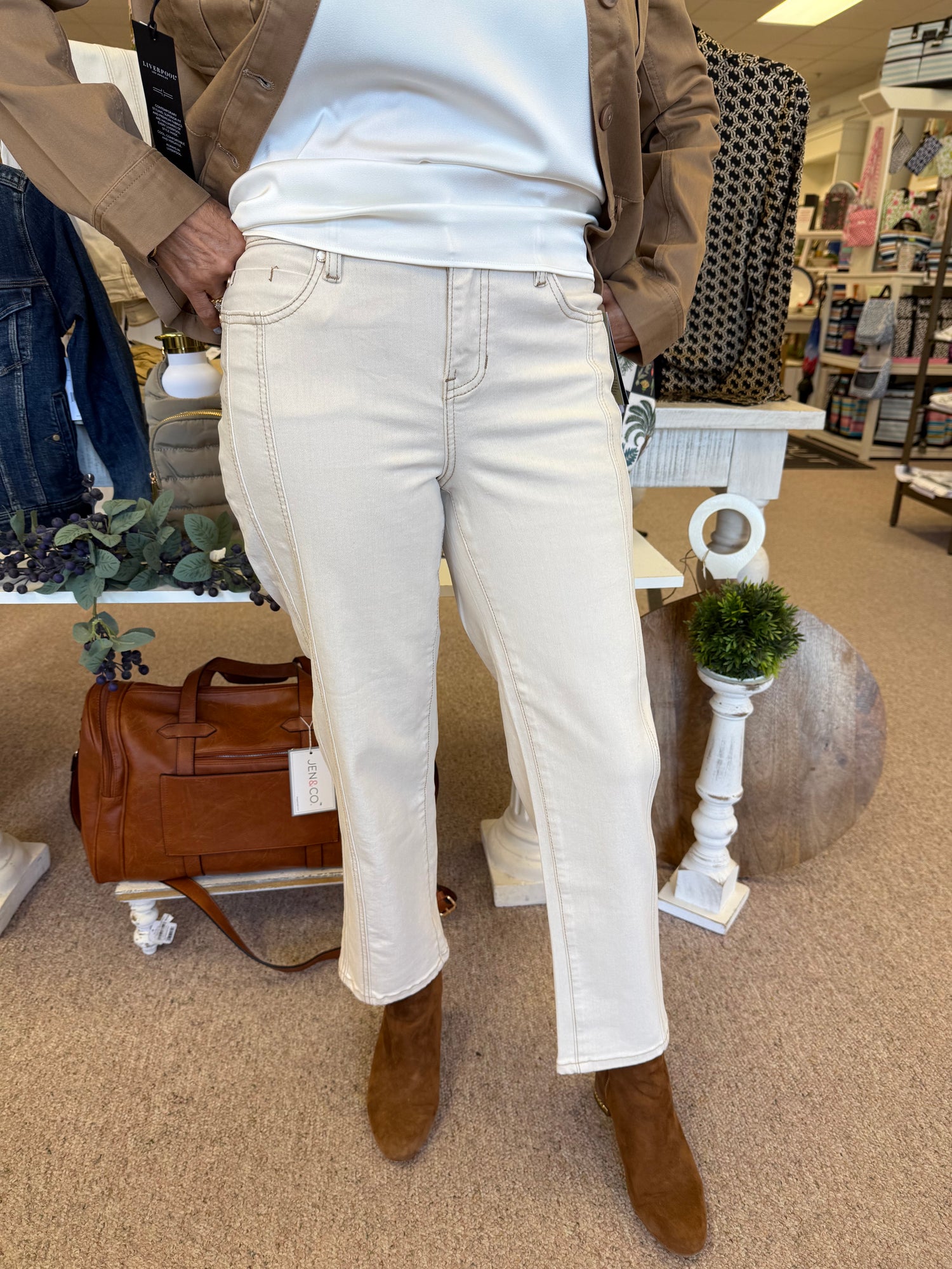 In a clean ecru wash, the Kennedy Crop redefines the straight-leg silhouette with refined structure and subtle design details. Elongating seam details and a crisp cropped length create a streamlined shape that’s equal parts tailored and relaxed. Style it with everything from minimalist knits to statement blouses—it’s the kind of piece that elevates the entire look.