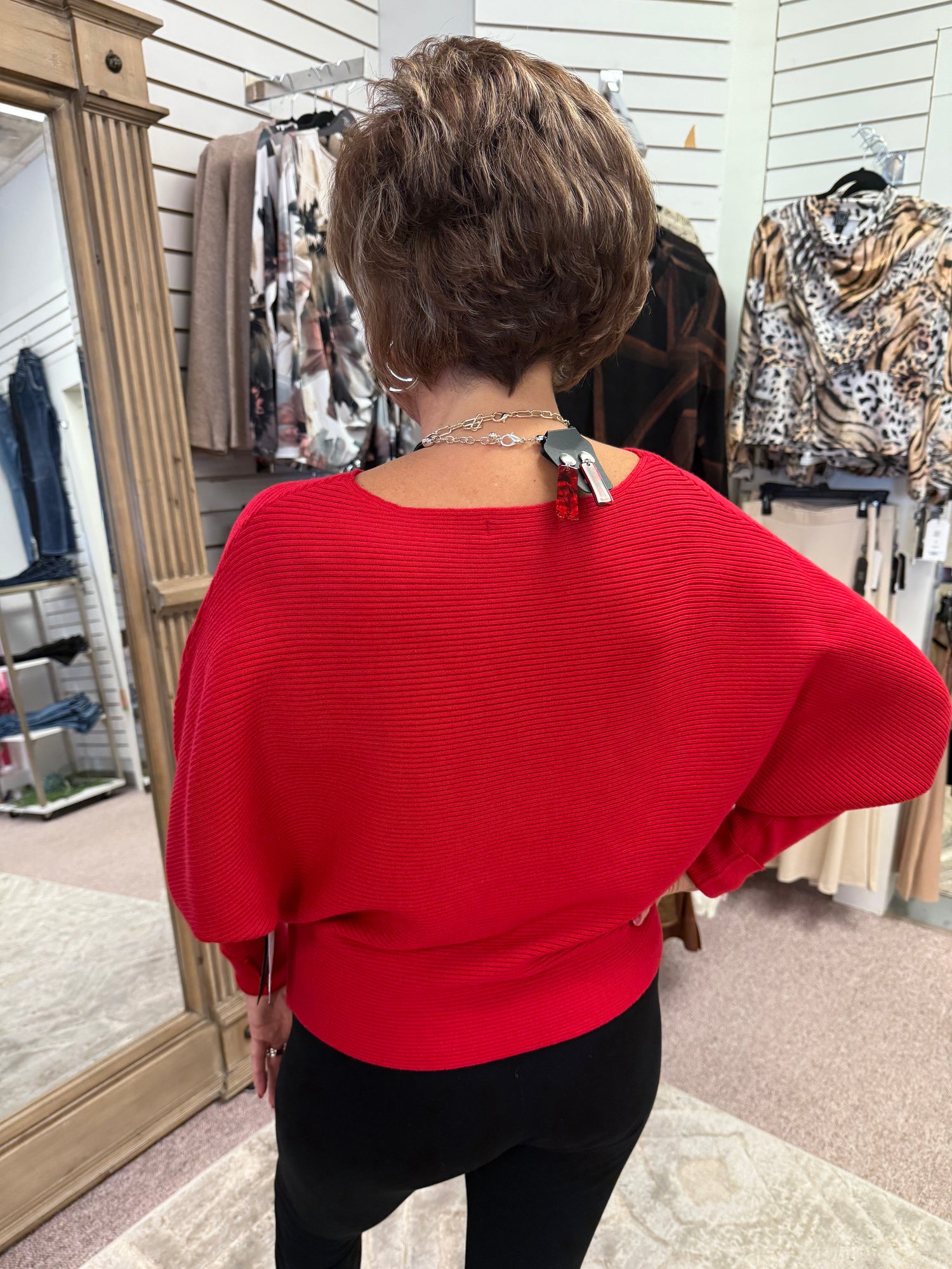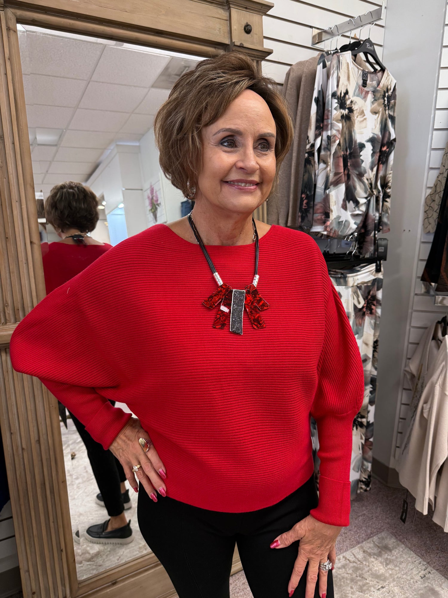 Relaxed by design, refined in detail. This rib knit sweater features a modern boat neckline and dolman sleeves that drape with ease. It’s the effortless knit that balances comfort and polish—perfect with denim by day or tailored bottoms by night.